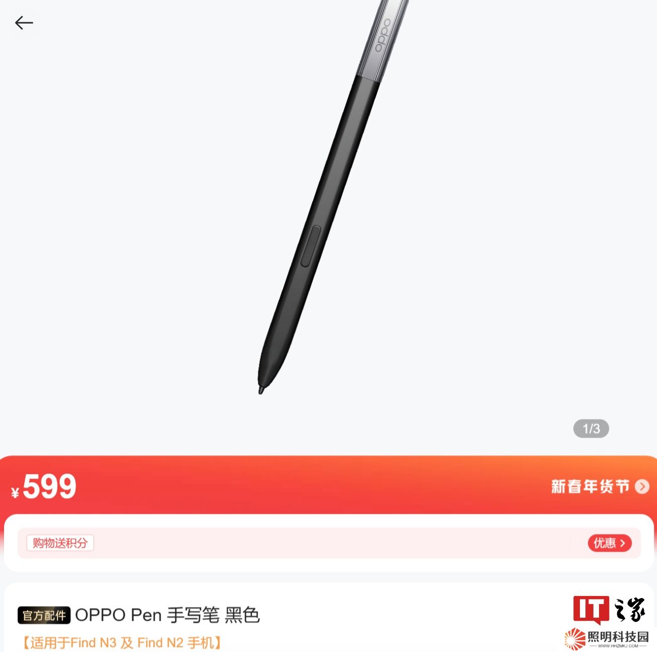 目前 OPPO 官網在售有黑色款 OPPO Pen 手寫筆,定價 599 元,適配 FInd N3 和 Find N2 折疊屏手機。
