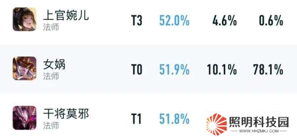 在27%出場率的前提下,勝率更是無限接近52%,不僅位居發育路的榜首,甚至還做到了遙遙領先,比蒼和公孫離都要亮眼許多。