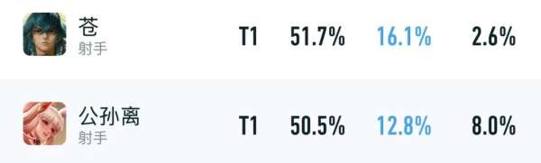 比如,蒼和公孫離的巔峰賽數據就很穩定,畢竟他倆是技能型射手,可以吃滿攻速裝提升Ad的紅利,前中期傷害會高不少。