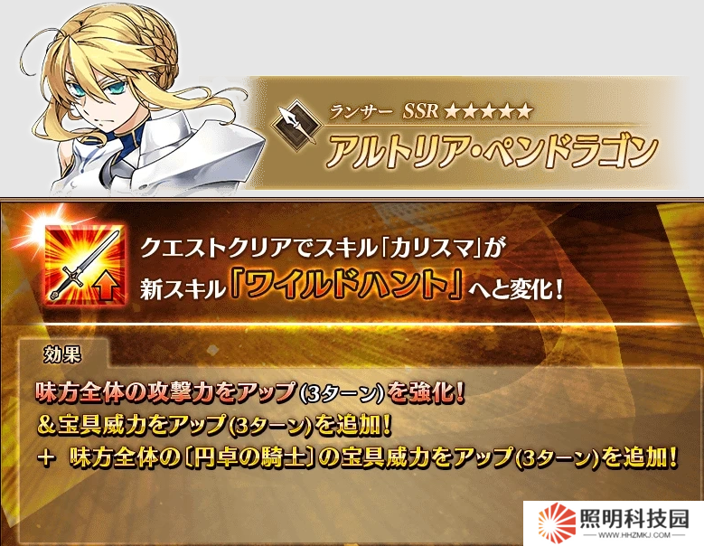 本次強(qiáng)化的是白槍呆的2技能,【領(lǐng)袖氣質(zhì)】改為【狂獵】,原本的全體攻擊力提升倍率改為10%~20%,追加提升己方全體10%~20%寶具威力3回合,提升己方全體【圓桌騎士】20%~30%寶具威力3回合效果。